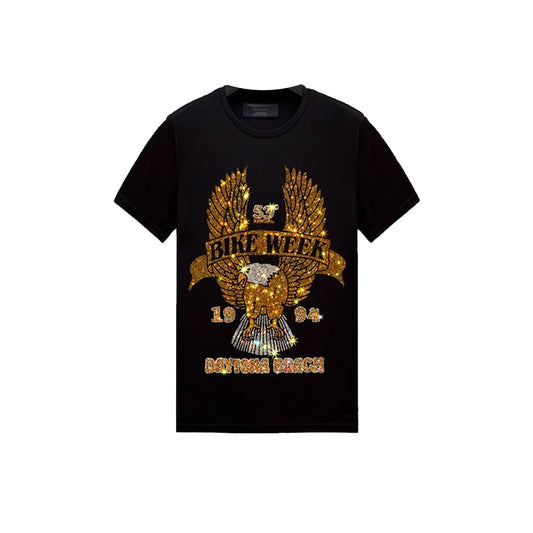 Unleash your inner free spirit with our Eagle Wing Biker Rhinestone T-shirt, designed to embody...