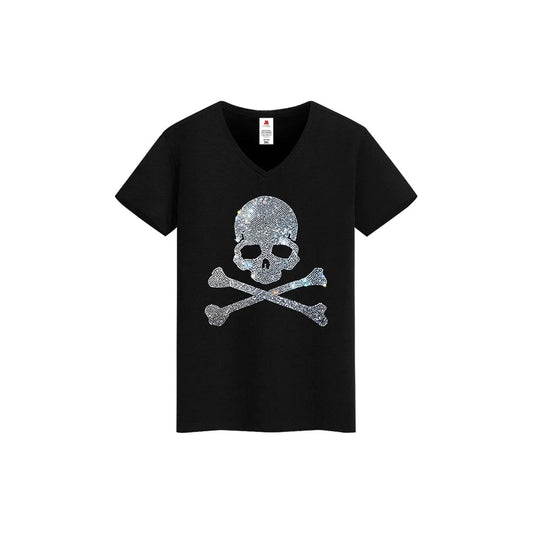 Make a bold and daring statement with our Shiny Rhinestone Skull T-shirt, a captivating blend...