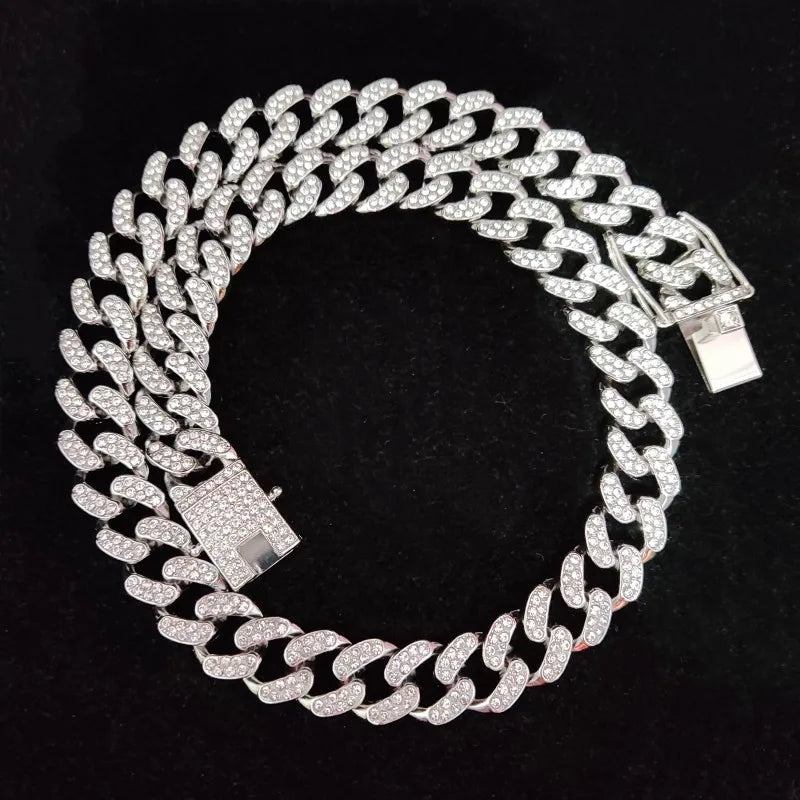 Embrace the epitome of urban luxury with our 13mm Hip Hop Iced Out Diamond Cuban Chain, a symbol of opulence and sophistication. Crafted with meticulous attention to detail, each link of this Cuban chain is meticulously adorned with shimmering faux diamonds, exuding a dazzling brilliance that captivates onlookers. Perfect for those who demand attention and crave urban flair, this chain adds an unmistakable edge to any ensemble. Whether you're hitting the streets or making a bold statement at an exclusive event, the 13mm Hip Hop Iced Out Diamond Cuban Chain is the ultimate accessory for elevating your style game. Make a bold statement and redefine luxury with this extraordinary piece today.
