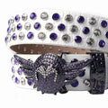 Black and White Angel Wings Buckle Rhinestone Belt with White Strap