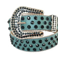 The "Black Rhinestone Belt With Cyan Strap" is an eye-catching and stylish accessory. With this gorgeous belt that expertly combines fashion and elegance, up your style game. This belt, which was precisely crafted and was intended to create a statement, is the ideal finishing touch for any outfit, adding a dash of glitz and sophistication.