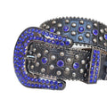 Blue Rhinestone With Silver Studs Belt With Black Texture Strap