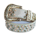 Adorning the strap, you'll find a stunning arrangement of crystal-studded rhinestones, thoughtfully positioned along the entire length of the belt. The rhinestones effortlessly harmonize with the vibrant shade of the strap, creating a seamless and complementary look. Meanwhile, the crystal-studded rhinestones offer a mesmerizing contrast, catching and reflecting light to produce a captivating sparkle that elevates the belt's overall allure.
