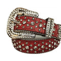 Diamond Rhinestone And Silver Studs Belt With Red Texture Strap