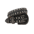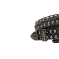 Engraved Buckle Black Strap With Black Studded Rhinestone Belt