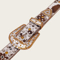 Engraved Buckle Cow Skin Style Strap Gold Studded Rhinestone Belt