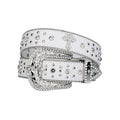 Engraved Buckle Cross White Strap With Crystal Studded Rhinestone Belt