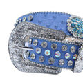 Engraved Buckle Flower Blue Strap With Multi & Crystal Studded Rhinestone Belt