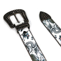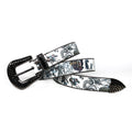 Engraved Buckle Halloween Decoration Black Shiny Rhinestone Belt