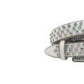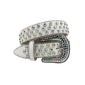Engraved Buckle White Strap With Shiny Crystals Rhinestone Belt
