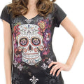 Our Made in Floral Skull Printed Rhinestone Shirt is the ideal combination of comfy clothing and edgy design to elevate your wardrobe. This t-shirt is a striking addition to any casual ensemble because to its vivid sugar skull design embellished with glittering rhinestones.