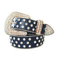 Adorning the strap, you'll find a stunning arrangement of blue and crystal-studded rhinestones, thoughtfully positioned along the entire length of the belt. The blue rhinestones effortlessly harmonize with the vibrant shade of the strap, creating a seamless and complementary look. Meanwhile, the crystal-studded rhinestones offer a mesmerizing contrast, catching and reflecting light to produce a captivating sparkle that elevates the belt's overall allure.
