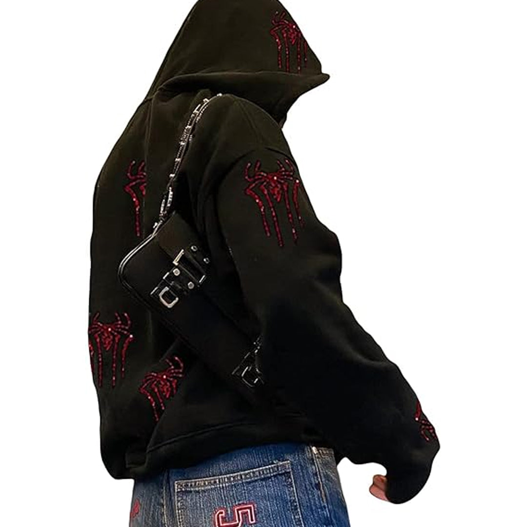 Hip Hop Spider Design Rhinestone Hoodie