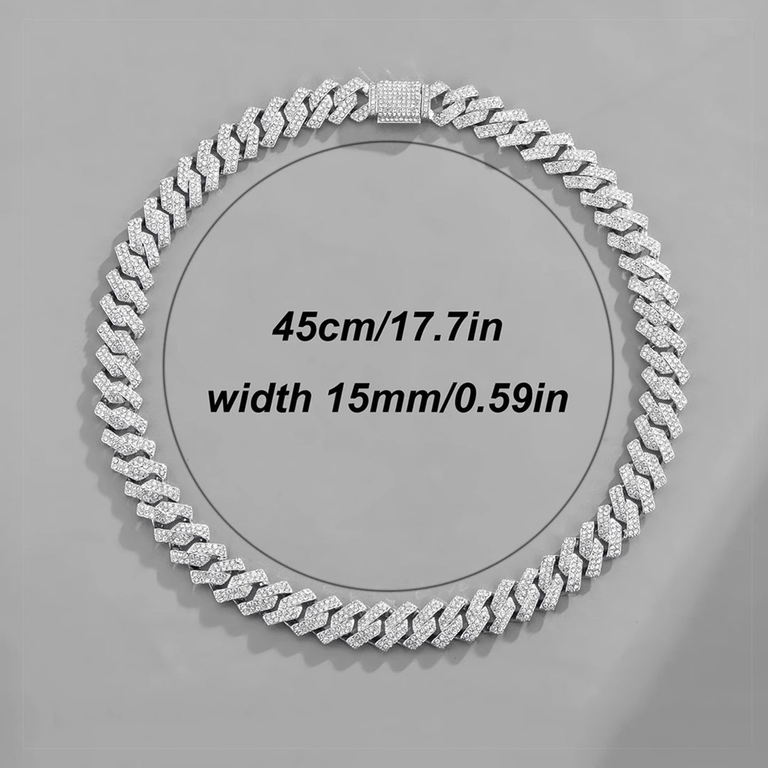 Elevate your style game with our stunning Iced Out Rhinestone Cuban Link Chain, a dazzling fusion of luxury and urban flair. Each meticulously crafted link is adorned with shimmering rhinestones, creating a mesmerizing cascade of brilliance that commands attention wherever you go. Whether worn solo as a statement piece or layered for added drama, this chain exudes confidence and sophistication. Embrace the spotlight and make a bold fashion statement with our Iced Out Rhinestone Cuban Link Chain, the epitome of streetwise elegance and undeniable charm.