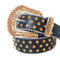The "Orange Rhinestone Belt With Black strap" is an eye-catching and stylish accessory. With this gorgeous belt that expertly combines fashion and elegance, up your style game. This belt, which was precisely crafted and was intended to create a statement, is the ideal finishing touch for any outfit, adding a dash of glitz and sophistication.