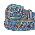 Red and Blue Rhinestone Belt With Snake Texture Strap