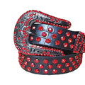 The "Red Rhinestone Belt With Black Textured Strap" is an eye-catching and stylish accessory. With this gorgeous belt that expertly combines fashion and elegance, up your style game. This belt, which was precisely crafted and was intended to create a statement, is the ideal finishing touch for any outfit, adding a dash of glitz and sophistication.
