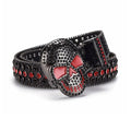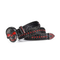 Skull Buckle Black Strap With Black & Red Studded Rhinestone Belt