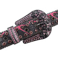 Skull Buckle Black Strap With Pink Crystal Studded Rhinestone Belt