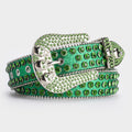 Skull Buckle Green Shiny Strap With Green Crystal Studded Rhinestone Belt