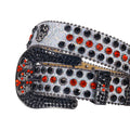 Skull Buckle Grey Strap With Black & Red Studded Rhinestone Belt