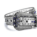 Skull Buckle Shiny Silver Strap With Blue & Crystal Studded Rhinestone Belt