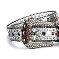 Skull Buckle Shiny Silver Strap With Multi & Red Studded Rhinestone Belt