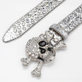 Skull Buckle Silver Shiny Strap With Crystal Studded Rhinestone Belt