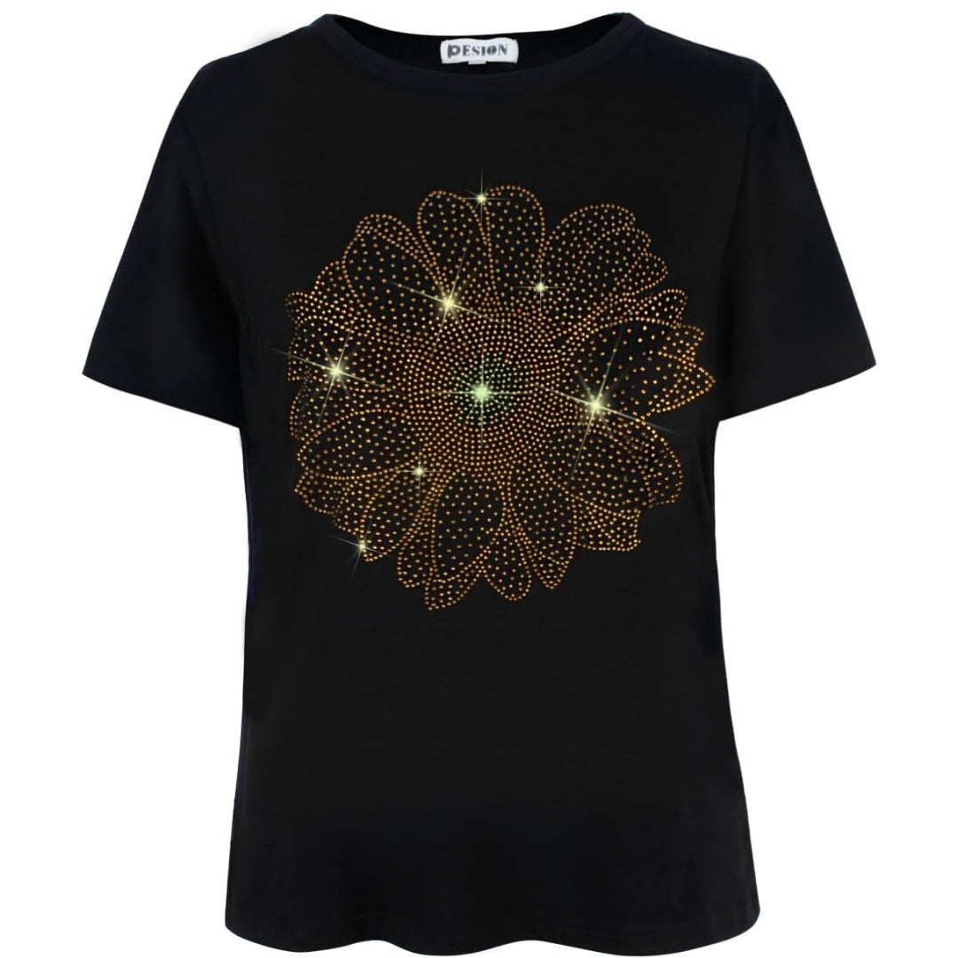 Sunflower Print Rhinestone Shirt