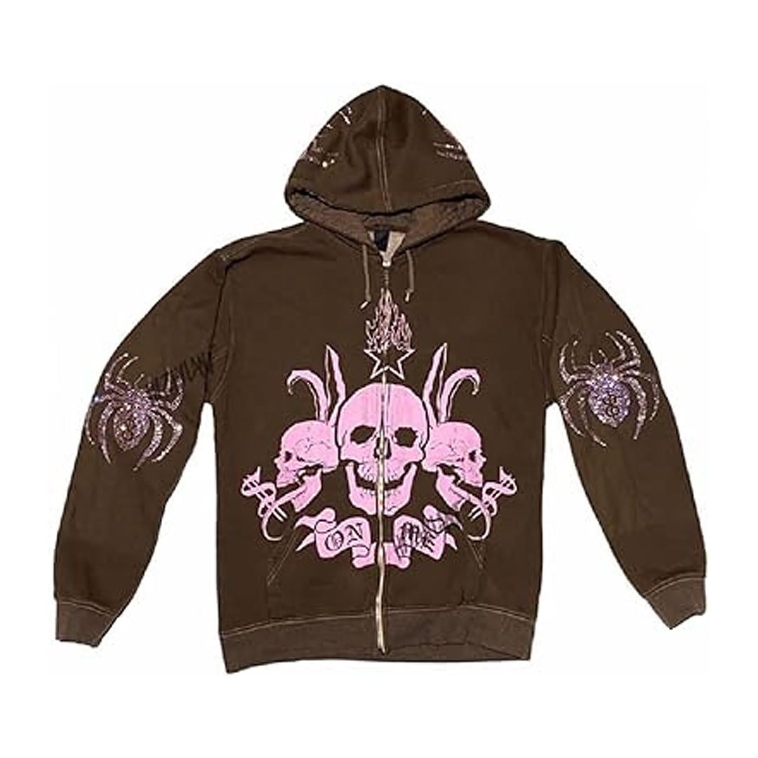 Elevate your style with our stunning Women's Rhinestone Spider Skull Printed Rhinestone Hoodie, blending edgy flair with comfort. Crafted with meticulous attention to detail, this hoodie boasts a captivating spider skull design, adorned with shimmering rhinestones for a touch of glamour. Perfect for fashion-forward individuals, it effortlessly combines statement-making aesthetics with cozy functionality. Whether you're lounging at home or hitting the streets, this hoodie is sure to turn heads and make a bold statement. Upgrade your wardrobe with this must-have piece that seamlessly merges fashion and attitude.